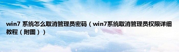 大家好,综合小编来为大家讲解下win7 系统怎么取消管理员密码,win7系统取消管理员权限详细教程,附图这个很多人还不知道,现在让我们一起来看看吧!