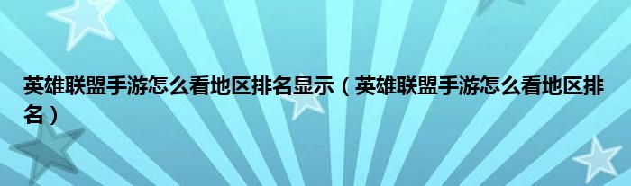 大家好,综合小编来为大家讲解下英雄联盟手游怎么看地区排名显示,英雄联盟手游怎么看地区排名这个很多人还不知道,现在让我们一起来看看吧!