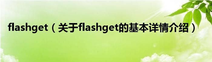 本文关于flashget的基本详情介绍就讲解完毕,希望对大家有所帮助。