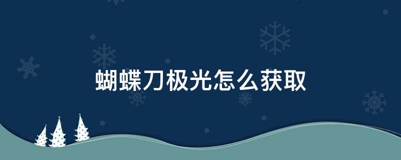 蝴蝶刀极光通过抽奖或活动的方式获得,在cf游戏中,巴雷特极光可以在飞行棋里获得,柯尔特极光和蝴蝶刀极光是在翠意舞蝶夺宝活动里获得的。cf一般指《穿越火线:枪战王者》,该游戏是一款由韩国Smile gate研发商及腾讯游戏旗下天美工作室群打造发布的第一人称射击类手游。