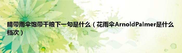 大家好,综合小编来为大家讲解下晴带雨伞饱带干粮下一句是什么,花雨伞ArnoldPalmer是什么档次这个很多人还不知道,现在让我们一起来看看吧!