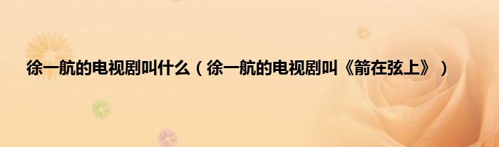 欢迎观看本篇文章,小升来为大家解答以上问题。徐一航的电视剧叫什么,徐一航的电视剧叫《箭在弦上》很多人还不知道,现在让我们一起来看看吧!