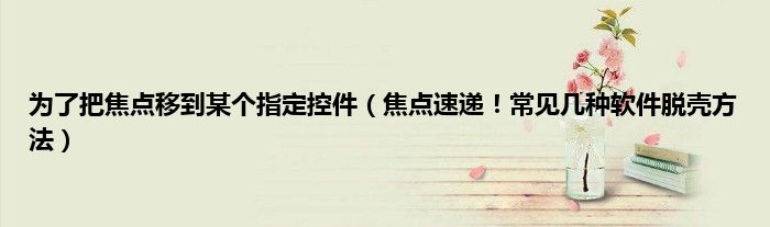 大家好,综合小编来为大家讲解下为了把焦点移到某个指定控件,焦点速递!常见几种软件脱壳方法这个很多人还不知道,现在让我们一起来看看吧!