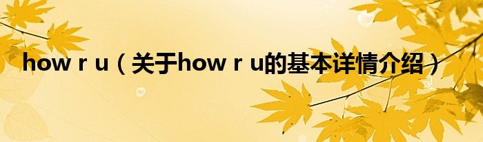 本文关于how r u的基本详情介绍就讲解完毕,希望对大家有所帮助。