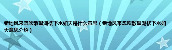 欢迎观看本篇文章,小升来为大家解答以上问题。卷地风来忽吹散望湖楼下水如天是什么意思,卷地风来忽吹散望湖楼下水如天意思介绍很多人还不知道,现在让我们一起来看看吧!