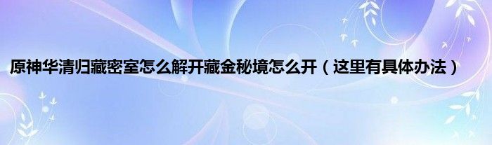 原神华清归藏密室怎么解开藏金秘境怎么开(这里有具体办法)