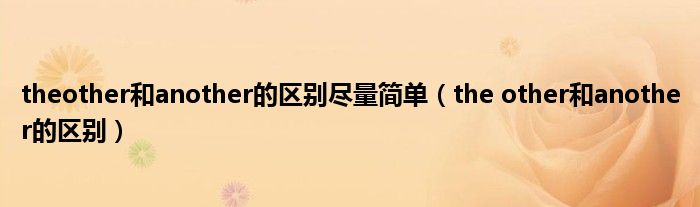 大家好,小问来为大家解答以上问题。theother和another的区别尽量简单,the other和another的区别这个很多人还不知道,现在让我们一起来看看吧!