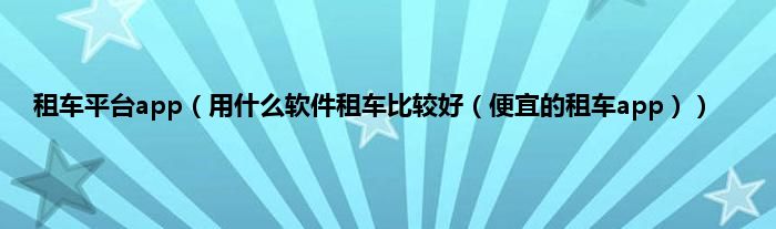 以下内容关于《全国租车软件哪个便宜好用》的解答。