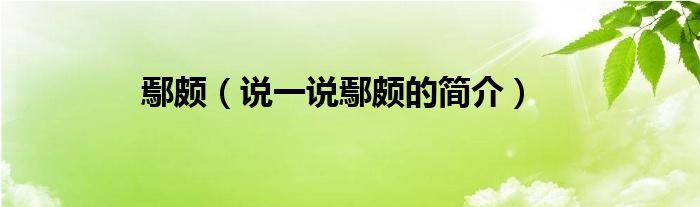 夏弥来为大家解答以下的问题,鄢颇,说一说鄢颇的简介,现在让我们一起来看看吧!