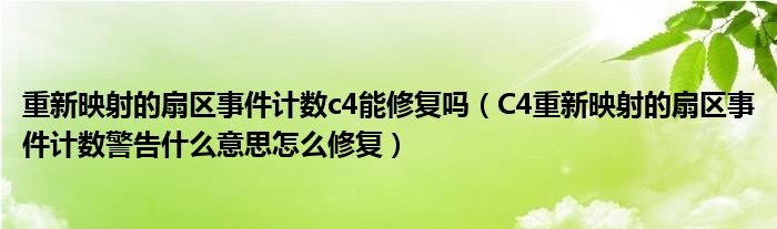 关于重新映射的扇区事件计数c4能修复吗,C4重新映射的扇区事件计数警告什么意思怎么修复这个很多人还不知道,今天菲菲来为大家解答以上的问题,现在让我们一起来看看吧!