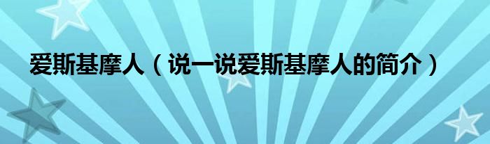 夏弥来为大家解答以下的问题,爱斯基摩人,说一说爱斯基摩人的简介,现在让我们一起来看看吧!