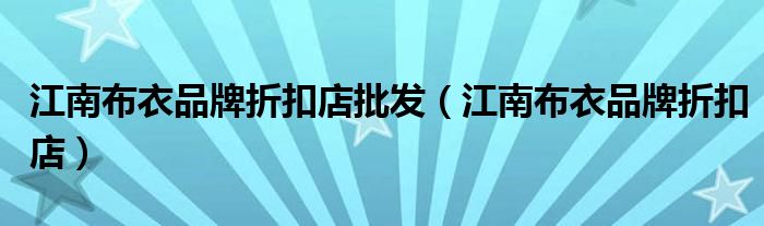 关于江南布衣品牌折扣店批发,江南布衣品牌折扣店这个很多人还不知道,今天菲菲来为大家解答以上的问题,现在让我们一起来看看吧!