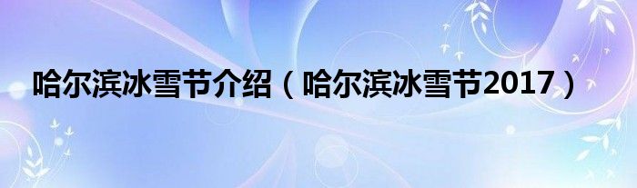哈尔滨冰雪节介绍(哈尔滨冰雪节2017)