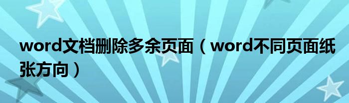 最佳答案关于word文档删除多余页面,word不同页面纸张方向这个很多人还不知道,今天菲菲来为大家解答以上的问题,现在让我们一起来看看吧!1、参照下面的方法进行,在Word中,比如所有页均为纵向,假设要把第三页设置成横向:将光标定位在第三页首行前面,页面布局——“页面设置”右下角功能扩展箭头——纸...