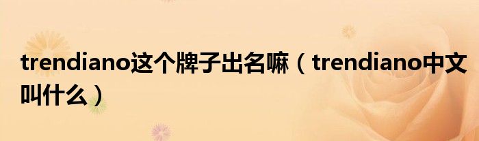 trendiano这个牌子出名嘛(trendiano中文叫什么)