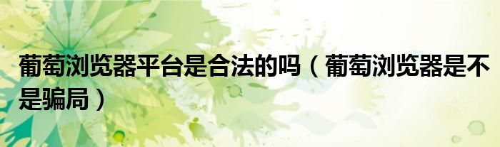 葡萄浏览器平台是合法的吗(葡萄浏览器是不是骗局)