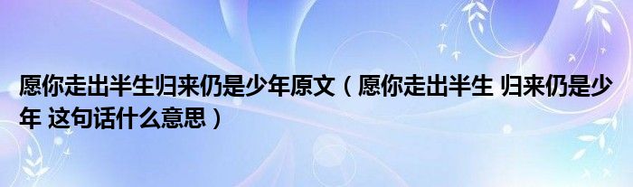 关于愿你走出半生归来仍是少年原文,愿你走出半生 归来仍是少年 这句话什么意思这个很多人还不知道,今天菲菲来为大家解答以上的问题,现在让我们一起来看看吧!