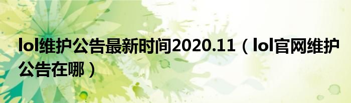 关于lol维护公告最新时间2020.11,lol官网维护公告在哪这个很多人还不知道,今天菲菲来为大家解答以上的问题,现在让我们一起来看看吧!
