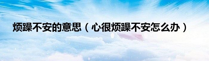 大家好,乐天来为大家解答以下的问题,烦躁不安的意思,心很烦躁不安怎么办很多人还不知道,现在让我们一起来看看吧!