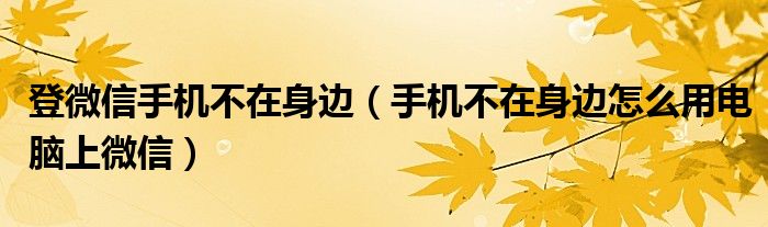 关于登微信手机不在身边,手机不在身边怎么用电脑上微信这个很多人还不知道,今天菲菲来为大家解答以上的问题,现在让我们一起来看看吧!