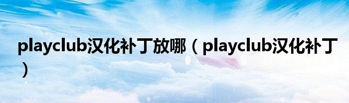 关于playclub汉化补丁放哪,playclub汉化补丁这个很多人还不知道,今天菲菲来为大家解答以上的问题,现在让我们一起来看看吧!