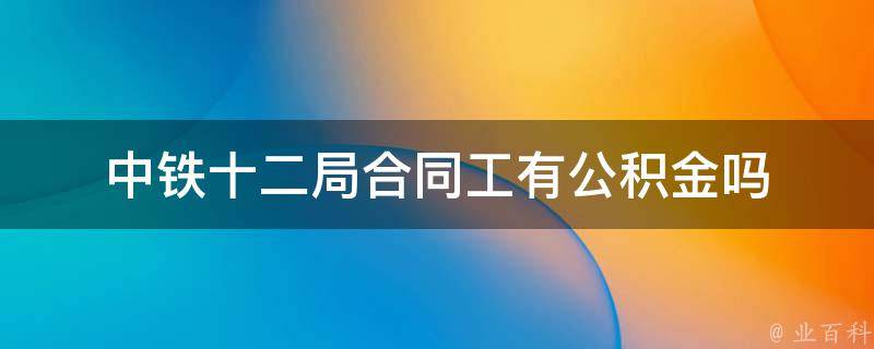 最佳答案中铁十二局合同工没有公积金,有社会保险(5险)。中铁十二局集团有限公司为中国铁建股份有限公司的全资子公司,具有铁路工程、房屋建筑施工总承包特级,公路、水利水电工程施工总承包一级以及多项专业承包资质。经营领域涉及铁路、公路、桥梁、市政、城市轻轨、地铁、水利水电、机场、电力、通信、...