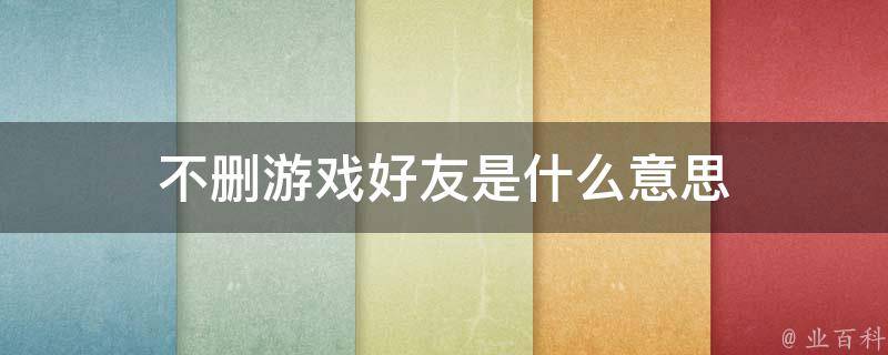 不删游戏好友是指不删除游戏里的好友,代表不想和对方失去联系。游戏好友能够帮助玩家拓展社交,从长远的方向来说,也能够提高玩家玩游戏的积极性。还可以互相协作,比如一些需要打副本的游戏中,玩家打不过以后可以拉好友帮助自己一同战斗。