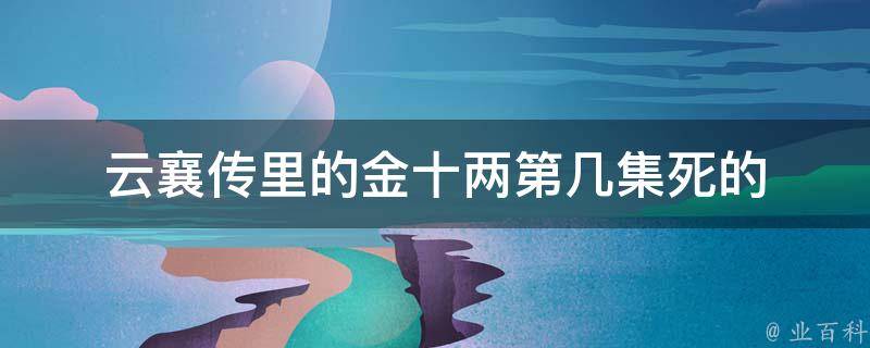 云襄传里的金十两第32集死的。在剧中,金十两中了寇元杰的噬心散,之后又被追兵追杀,为了掩护云襄逃离被追兵杀死。后来云襄派去的人并没有寻回金十两的尸体,只是找到了他的刀鞘。剧中的金彪(金十两)是行走江湖的刀客,他看上去爱财,却把挣来的钱财捐给了济善堂,帮助孤儿。