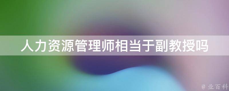 视情况而定。人力资源管理师是职业资格证书,其中高级人力资源管理师(职业资格一级)才相当于副高职称,即副教授职级,高级职称。此外,人力资源管理师(职业资格二级),相当于中级职称,如工程师等;助理人力资源管理师(职业资格三级),相当于助理职称,如助理工程师等;人力资源管理员(职业资格四级),相当于初级职称,如技术员等。