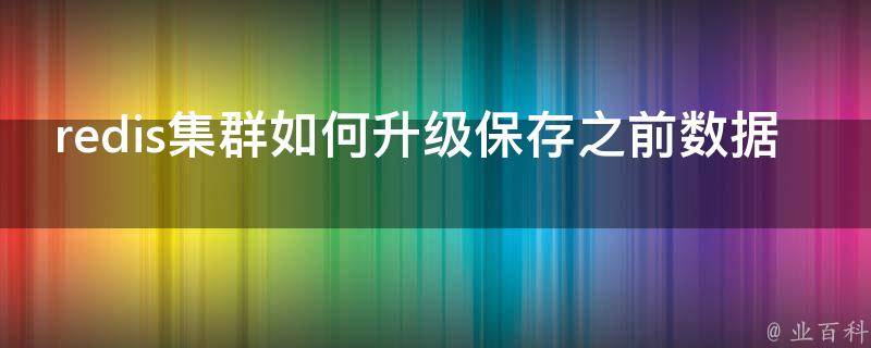 1、备份数据:在进行任何升级操作之前,务必备份Redis集群中的数据。可以使用Redis提供的持久化方式(如快照或AOF)来创建数据备份。