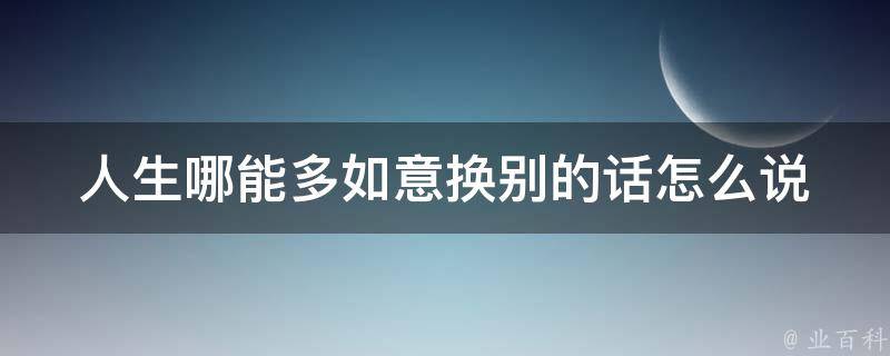 人生哪能多如意换别的话可以说成人生总是充满了起伏和挑战,时常会遇到意想不到的困难,或者生活往往不按我们的计划进行,会出现一些令人犹豫和挣扎的时刻。无论如何,人生中的困难和挫折是我们成长和学习的机会,通过面对与克服这些困难,我们可以变得更加坚强和有智慧。