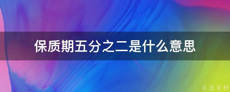 保质期五分之二是一种比例表达方式,用来描述某个产品的保质期或有效期限。具体来说,五分之二表示两个比例数值,即分子为5、分母为2,可简化为5/2。在这种情况下,如果将保质期或有效期限划分为2个等分,那么第一份占总期限的5/2、第二份占总期限的5/2。这种表示方式常用于说明时间分配或期限划分的比例关系。