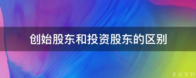 创始股东和投资股东的区别
