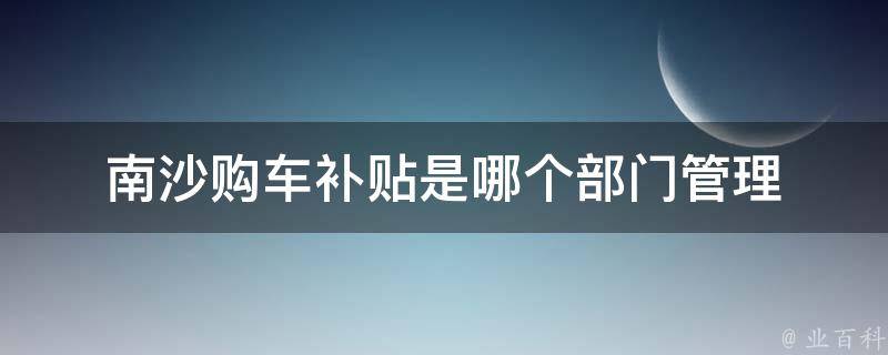 南沙购车补贴一般由南沙区政府财政部门管理。南沙区是广州市的一个行政区域,作为一个特定区域,它具有独立的政府部门和政策规定。购车补贴通常是由政府制定的一种政策措施,旨在鼓励和支持居民购买新能源汽车或符合特定条件的环保车辆。这些补贴一般由当地政府或相关部门负责制定、管理和执行。