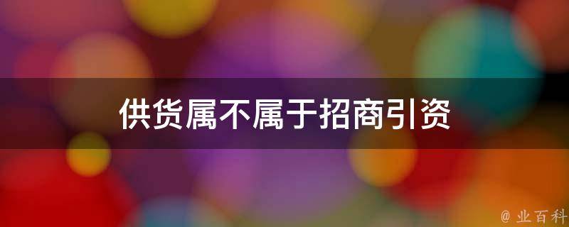 供货不属于招商引资的范畴。招商引资通常指政府或企业主动采取措施吸引国内外的投资者或企业前往特定地区、项目或产业进行投资。招商引资的重点通常是吸引资金、技术、市场和人才等资源,促进经济发展和产业升级。供货侧重于货物或产品的供应和交付,涉及到供应链管理、采购和物流等方面。供货通常是企业之间的业务活动,是满足需求和提供产品的过程。