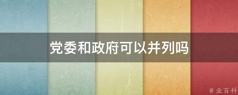 党委和政府可以并列。党委是指中国共产党在各级行政区域内的组织机构,负责协调和领导党在该行政区域内的工作。政府则是行政机关,负责行使行政权力,执行法律、政策和决策。在中国的行政管理体制中,通常会设置党委和政府两个独立但相互配合的机构。
