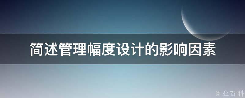 最佳答案1、工作能力:主管和下属的工作能力越强,管理幅度也越大。2、工作内容和性质:主管所处的层次高和较低层比管理幅度小;下属工作越相似,管理幅度越大;计划制定的越完善,管理幅度越大;非管理事务越少管理幅度越大。3、工作条件:配备助手可以增大主管的管理幅度;信息配备越先进,管理幅度越大;...