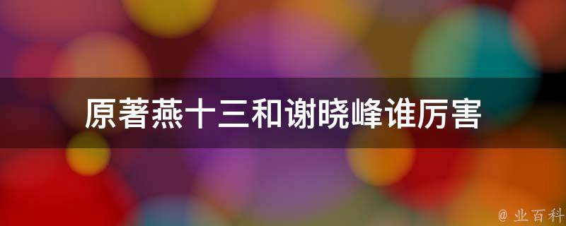 原著燕十三和谢晓峰谁厉害