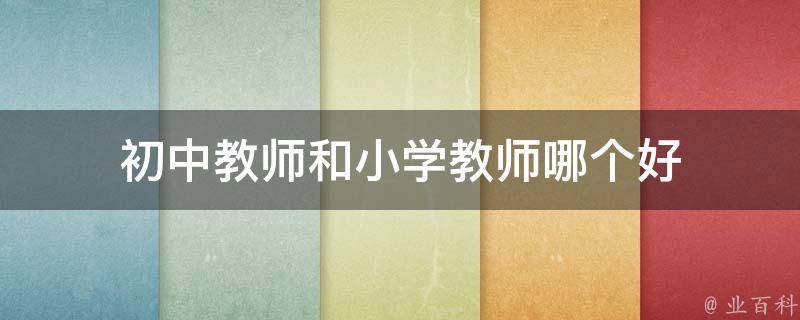 初中教师和小学教师都好,各有各的优势,可以根据自身情况选择合适的岗位。小学升初中属于义务教育,正是学生的基础教育阶段,而初中升高中要参加中考,有升学率指标,所以初中老师的压力要大些。同地区的中小学教师薪资差距不大,但是初中教师的工资要高一些,工作也会更多。