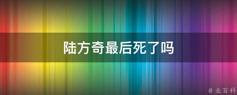 陆方奇最后没死,和臧秋在一起了。陆方奇是电视剧《照亮你》中的男配角,由任豪饰演。陆方奇性格直爽活泼,几次受伤都遇到了臧秋医生。陆方奇对臧秋一见钟情,用陪伴和温暖感化着臧秋,渐渐的让臧秋从失去方淮的悲伤中走了出来。后来臧秋接纳了和陆方奇的新感情,两个人走到了一起。