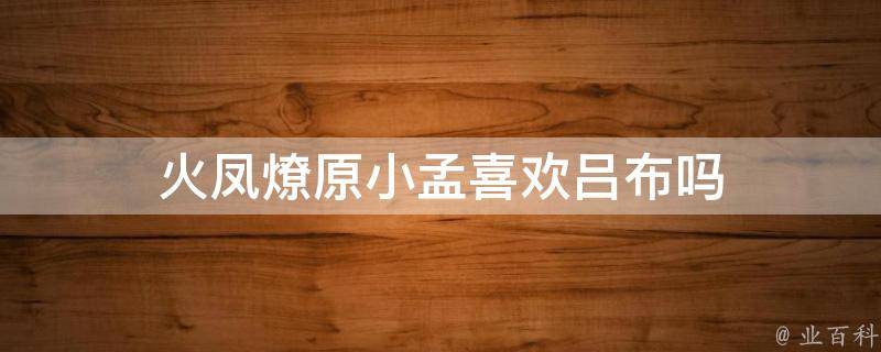 火凤燎原小孟喜欢吕布,小孟本为宦官,因宫中动乱而逃往司马家避难,其后加入残兵。有着百步穿杨的精绝箭术,同时也是个下毒高手。执行任务时常在后方支援或接应,善于窥探敌方情报,为完成任务有时以女装混入敌营。因美貌出众,先后得到董卓、吕布、秦宜禄等人的倾心。虽然出身令人惋惜,不过许多读者仍将其捧为本书的第一女主角。