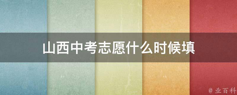 视情况而定。山西中考志愿一般在6月份填,但每年相应政策可能会有所不同。考生应在规定的时间段登录网站,填报、查看、修改志愿。考生和家长在测试期间可登录网站,了解相关政策、招生计划和招生学校情况,模拟填报高中阶段教育学校招生志愿。模拟运行阶段结束,考生填报的志愿全部清空作废。