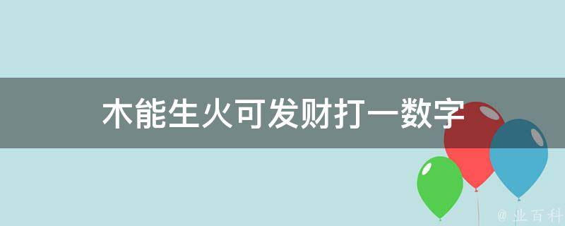 木能生火可发财打一数字