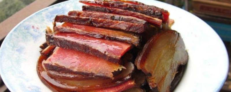 锅里放1勺食用油,放腊肉炒香,炒到腊肉微微卷起。