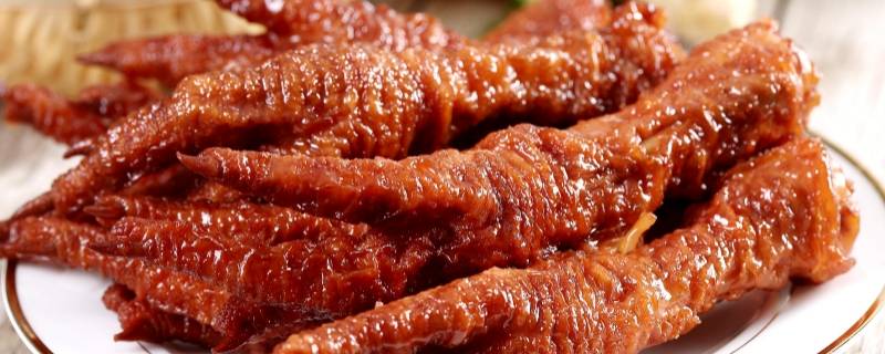 8、最后倒入纯净水、啤酒,啤酒的量必须能把鸡爪盖没,转小火炖煮40分钟左右,收汁后出锅。