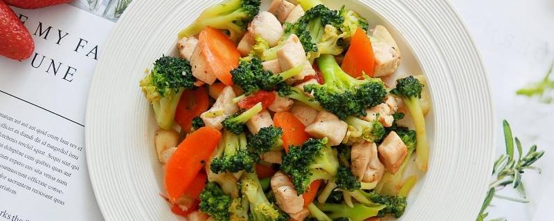 用料:鸡脯肉半块、西兰花半朵、胡萝卜半根、黑胡椒半茶匙、白胡椒一茶匙、盐适量、料酒一茶匙、生抽半茶匙、蚝油一茶匙、蒜2瓣、姜2片、西红柿半个。