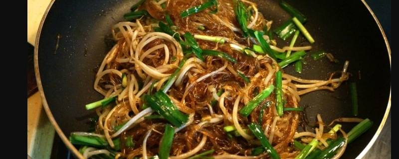 6、将粉丝入锅中翻炒,将豆芽的汤吸进去。