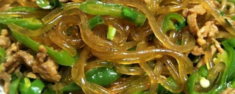 瘦猪肉1块、螺丝椒3根、蒜苗2根、红薯粉条1小把、生抽少许、老抽少许、盐适量、料酒适量、淀粉1小勺。