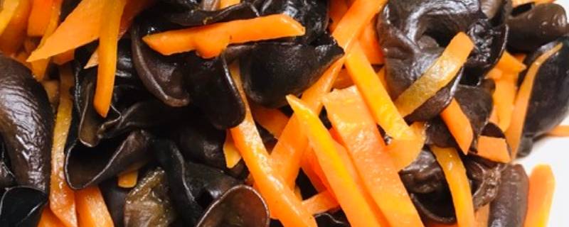 油锅烧热放红萝卜翻炒至熟,然后加木耳和瘦肉继续翻炒然后调料,稍微放一点水焖一下即可出锅。