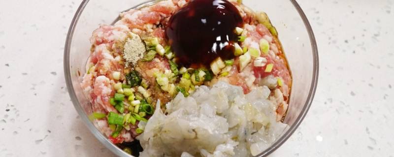 猪肉用以上调料腌制20分钟。胡萝卜、玉米、芹菜切丁,干香菇、干木耳浸泡后洗净切丁备用。加入一个鸡蛋搅拌均匀即可。